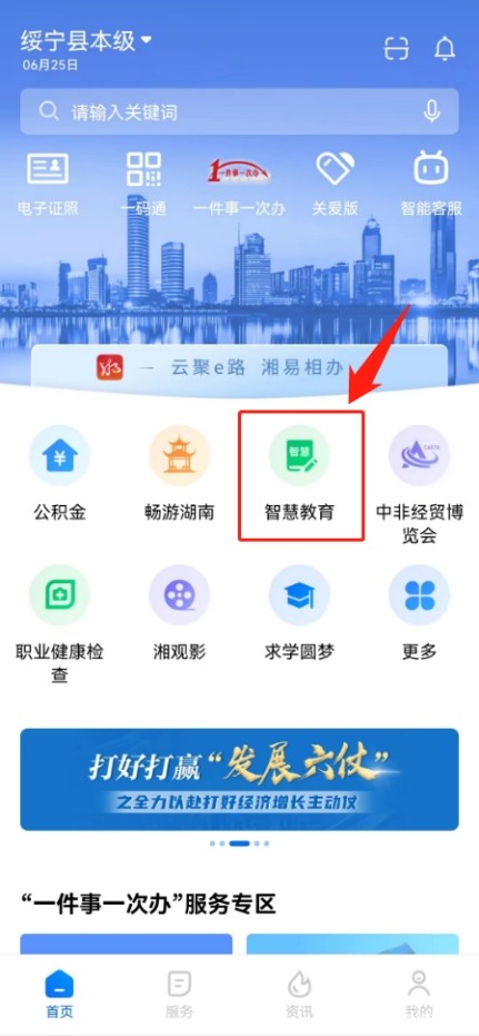 “湘易办”超级服务端“智慧教育”专区全面完成与省政务服务一体化平台对接,联动省教育厅和各市州教育部门,提供考试服务、教育信息、成绩查询、中小学专题课等多种主题服务,用政务服务的温度给每一位学生及学生家长带去关怀。