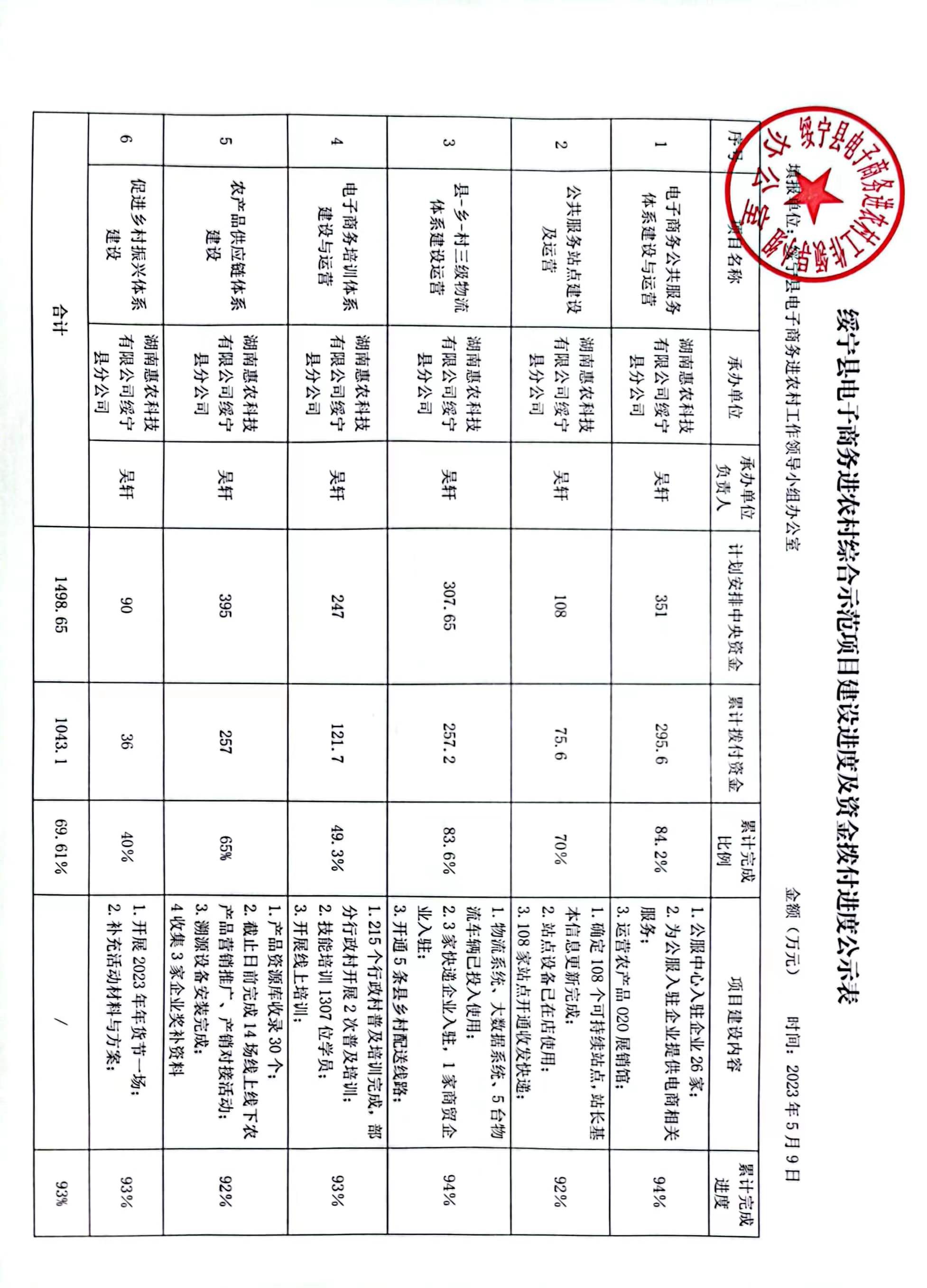 绥宁县电子商务进农村综合示范项目建设进度及资金拨付进度公示表